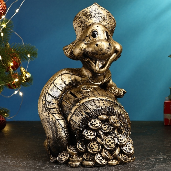 Копилка "Змея Василиса" черное золото, 30х20х25см