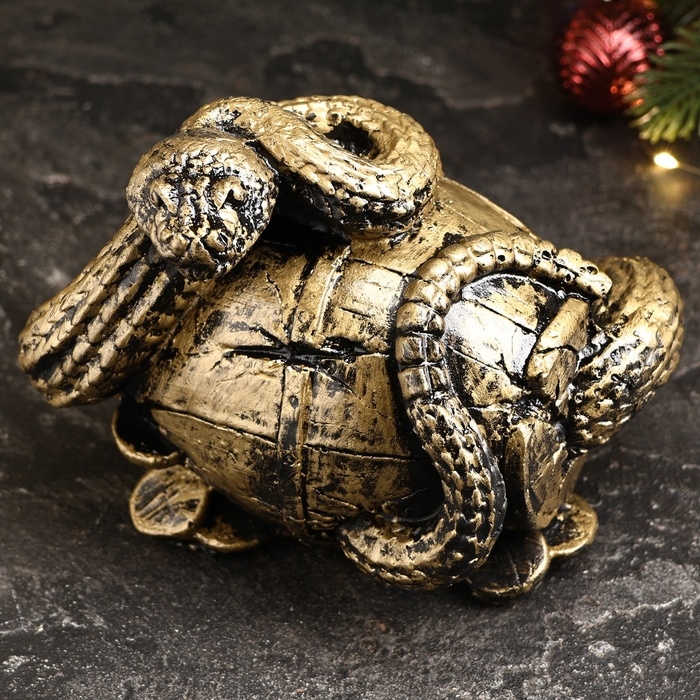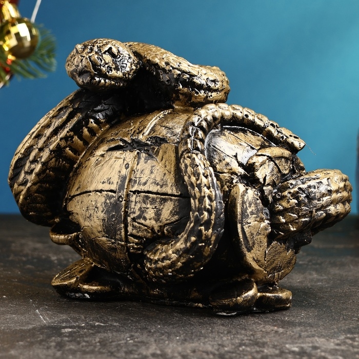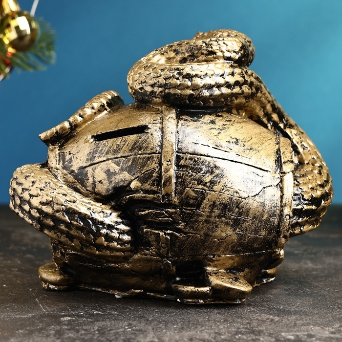 Копилка "Змея с бочкой" малая золото, 14х19х12см