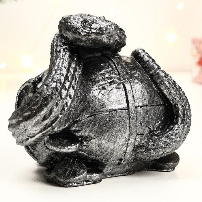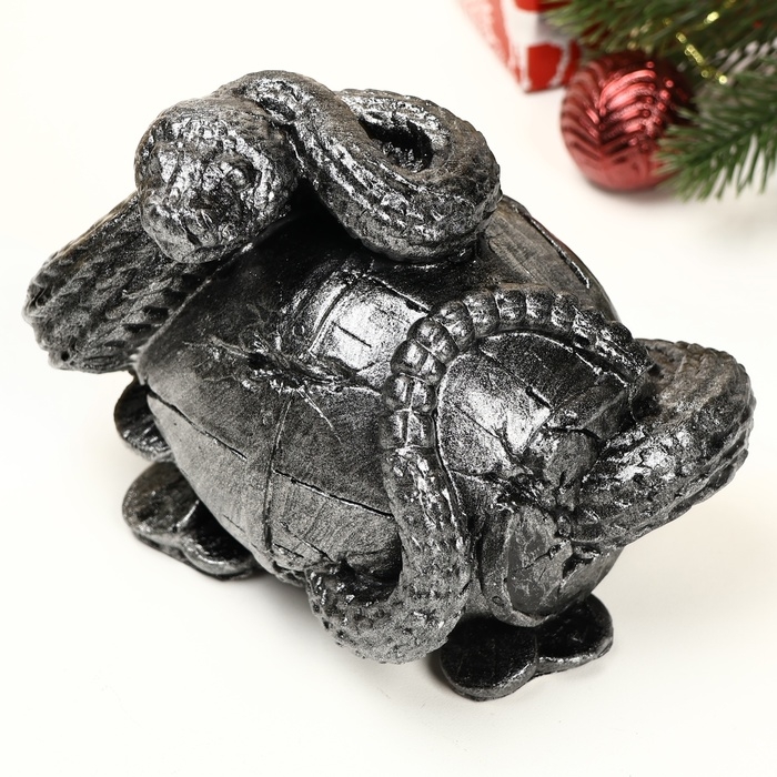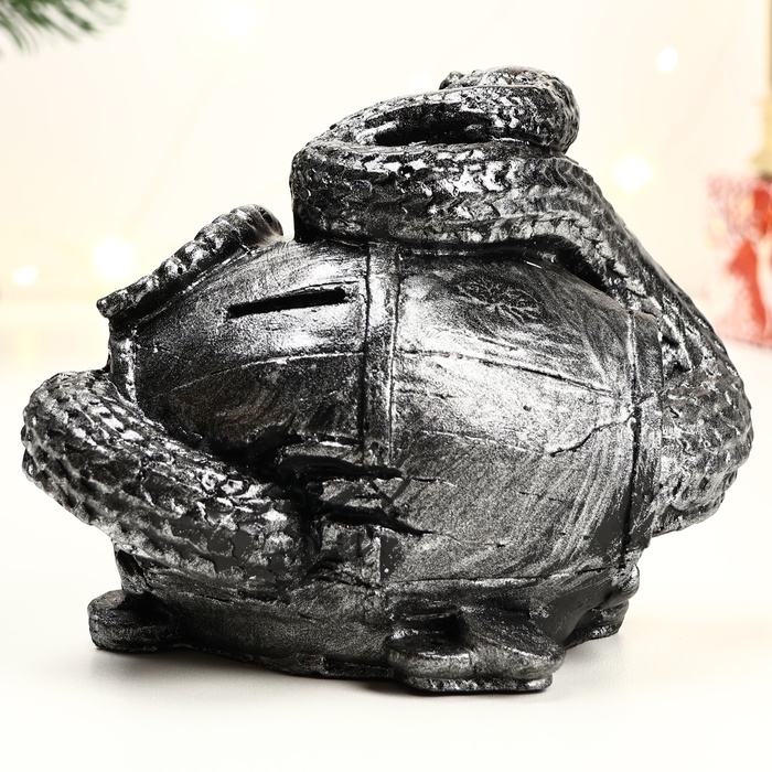 Копилка "Змея с бочкой" малая серебро, 14х19х12см