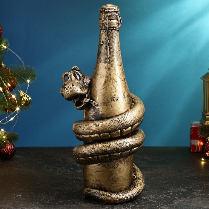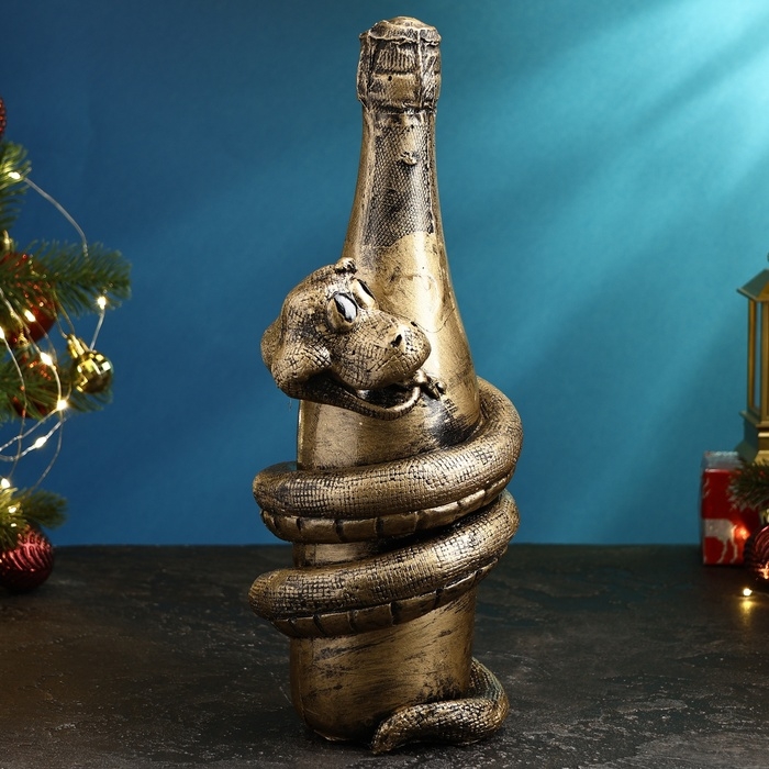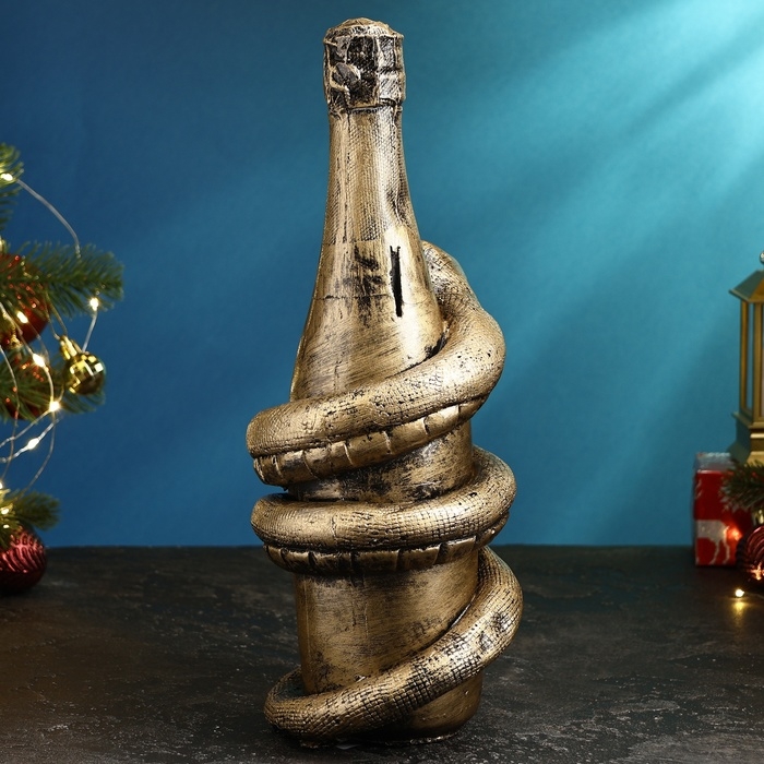 Копилка "Змея с шампанским" черное золото, 35х16х16см
