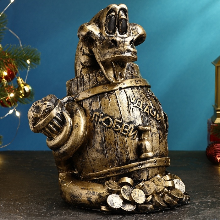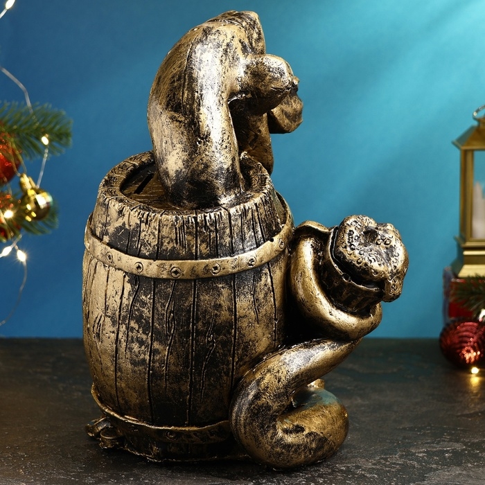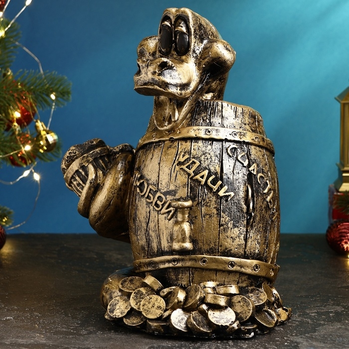 Копилка "Удав в бочке" черное золото, 18х23х20см