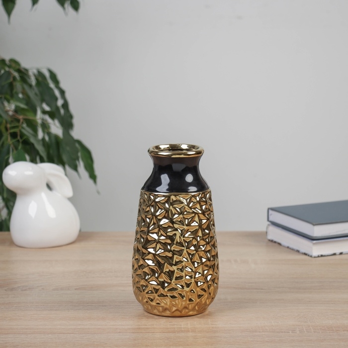 Ваза керамика настольная "Калеб" 20х9,5 см, чёрно-золотой