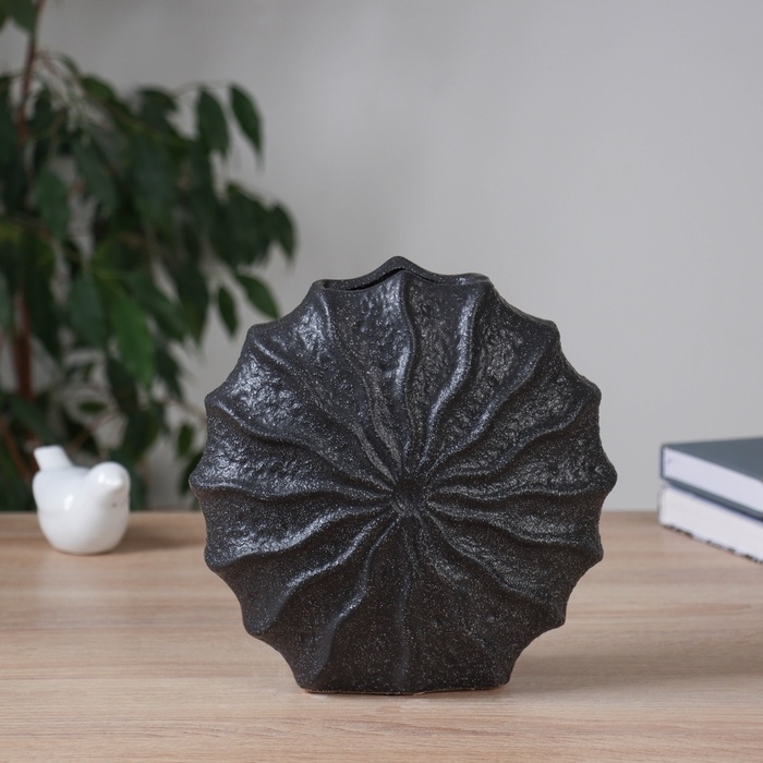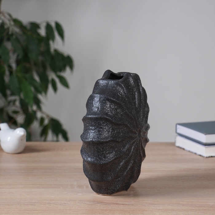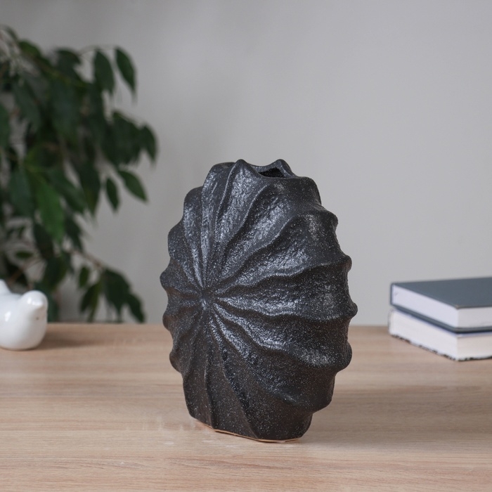 Ваза керамика настольная "Кайо" волна, d-7х2,5см, 21х19 см, чёрный