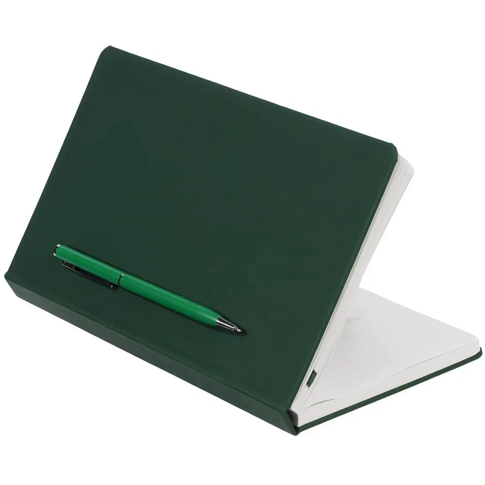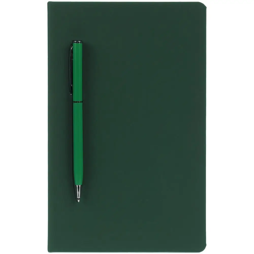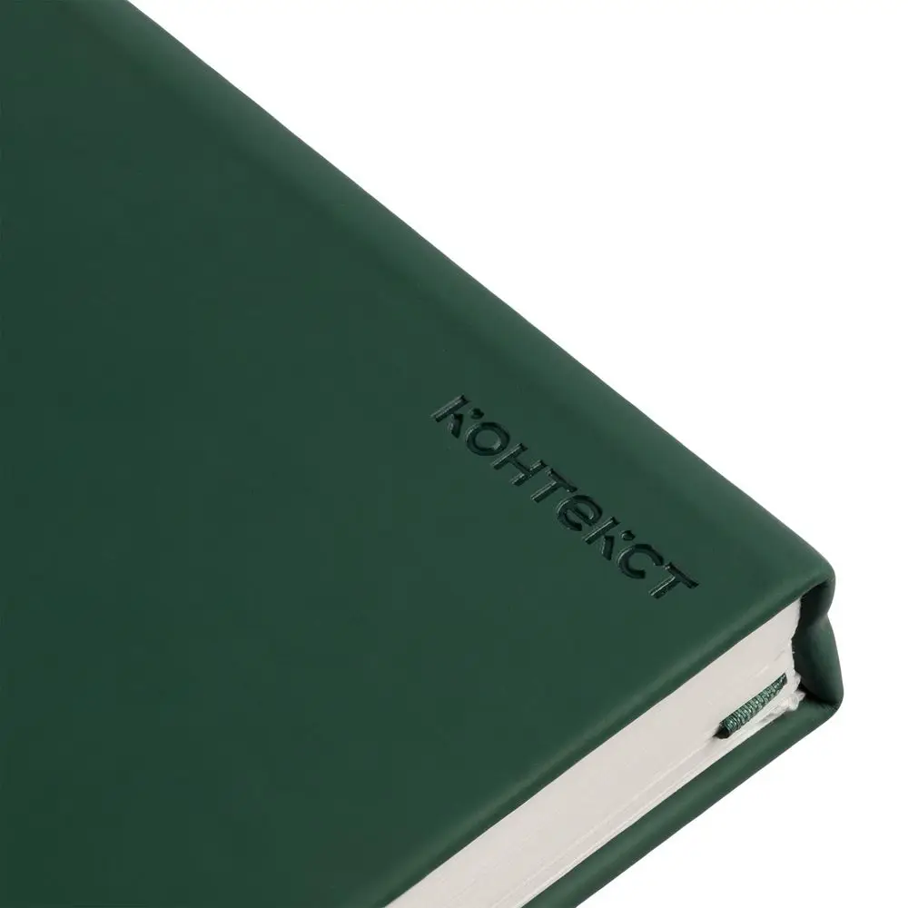 Ежедневник в твердой обложке, выполненной из материала Soft Touch, зеленый FF, дополнен цветным ляссе и магнитом, удерживающим ручку.