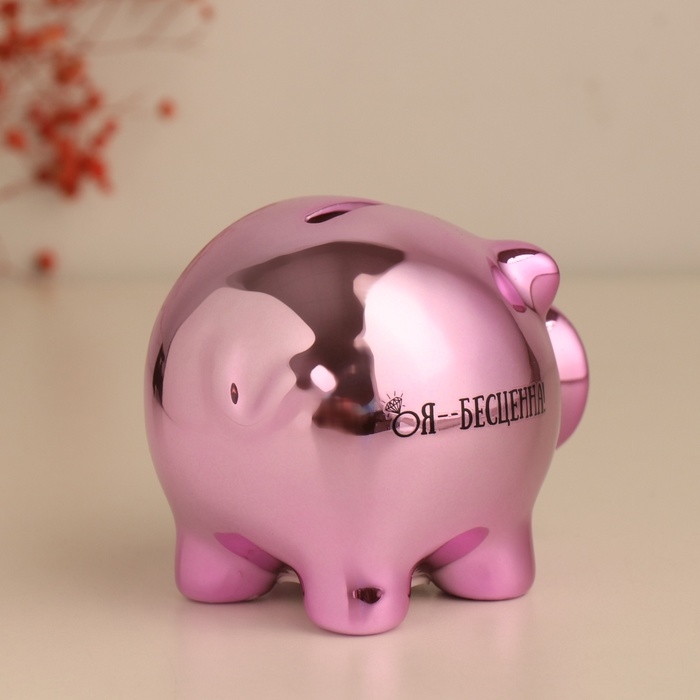 Копилка керамика "Розовая хрюша. Я - бесценна!" 11,3х8,9х9,5 см