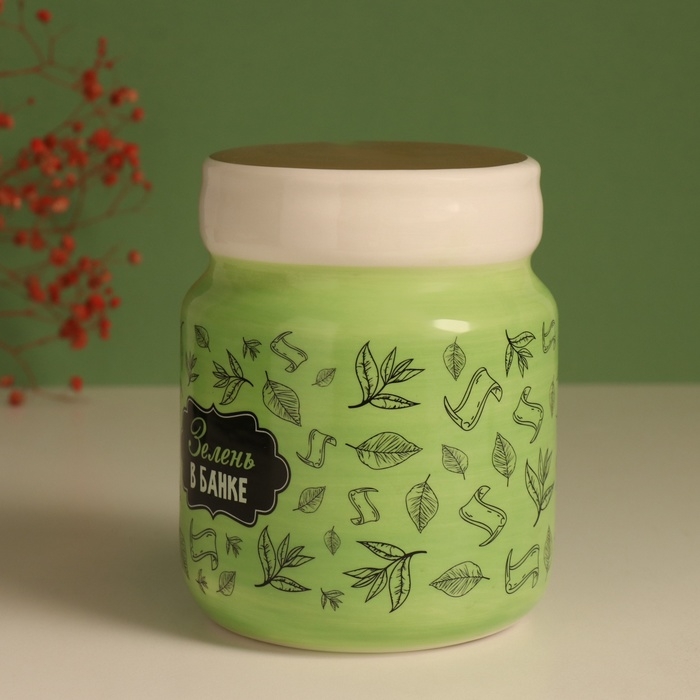 Копилка керамика "Зелень в банке" 11,5х11,5х14,3 см