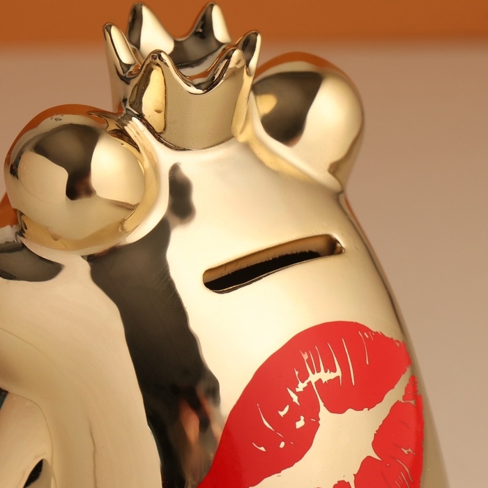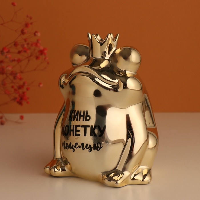 Копилка керамика "Золотая лягушка - Кинь монетку - поцелую" 12х10,5х15 см