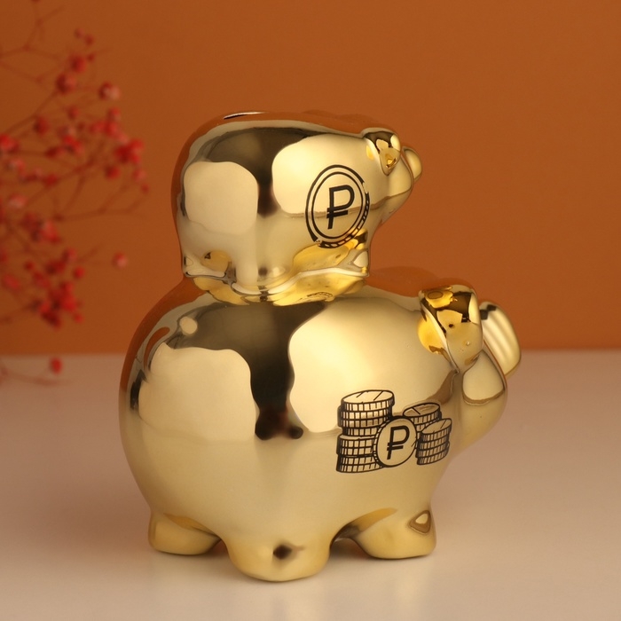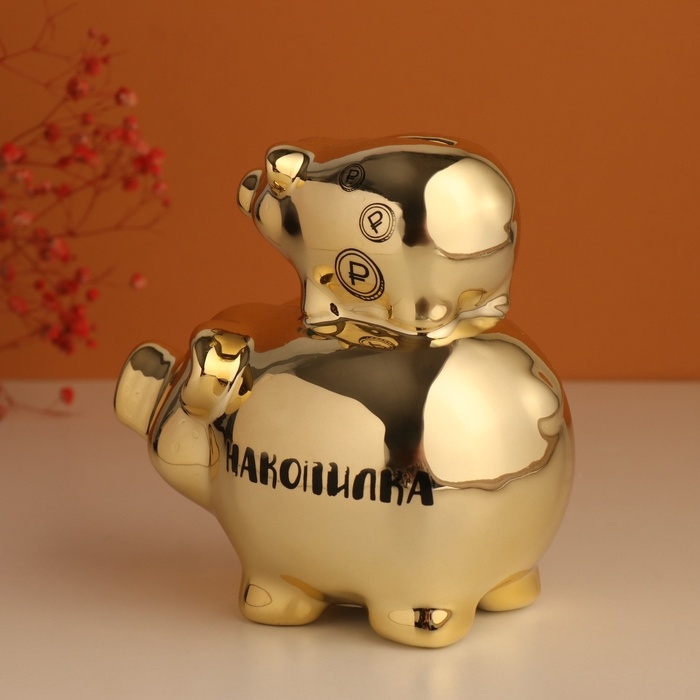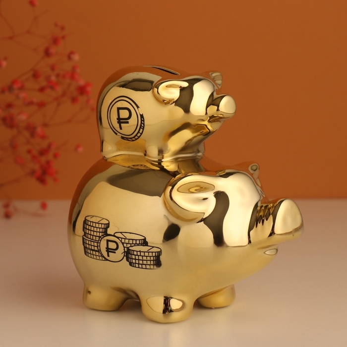 Копилка керамика "Свинки - Накопилка" золотая 12,5х8х14 см