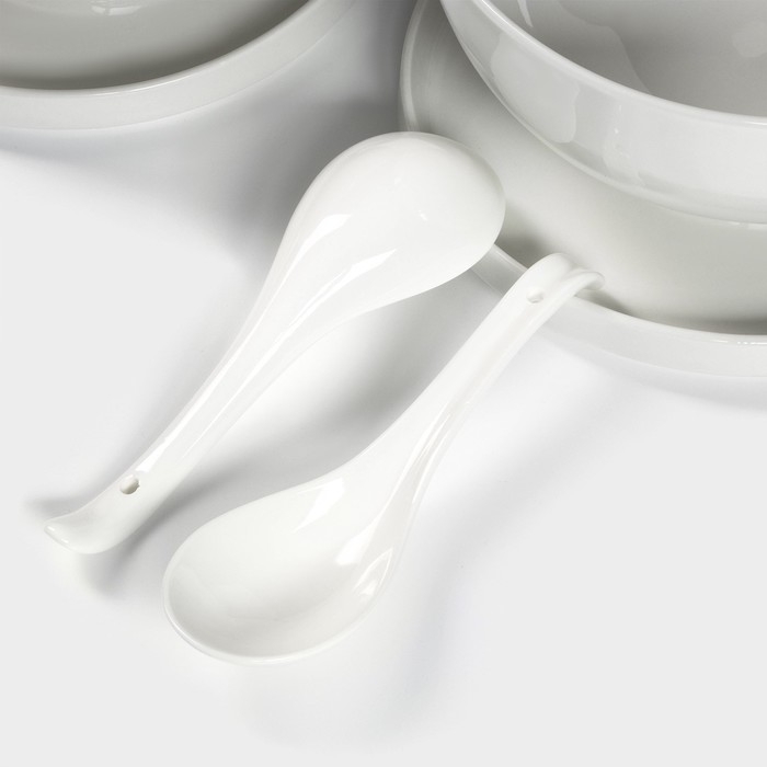 Набор фарфоровой посуды для рамена Доляна, 8 предметов: миска 1,6 л, тарелка 20×2,2 см, 2 ложки, 2 пары палочек, цвет белый
