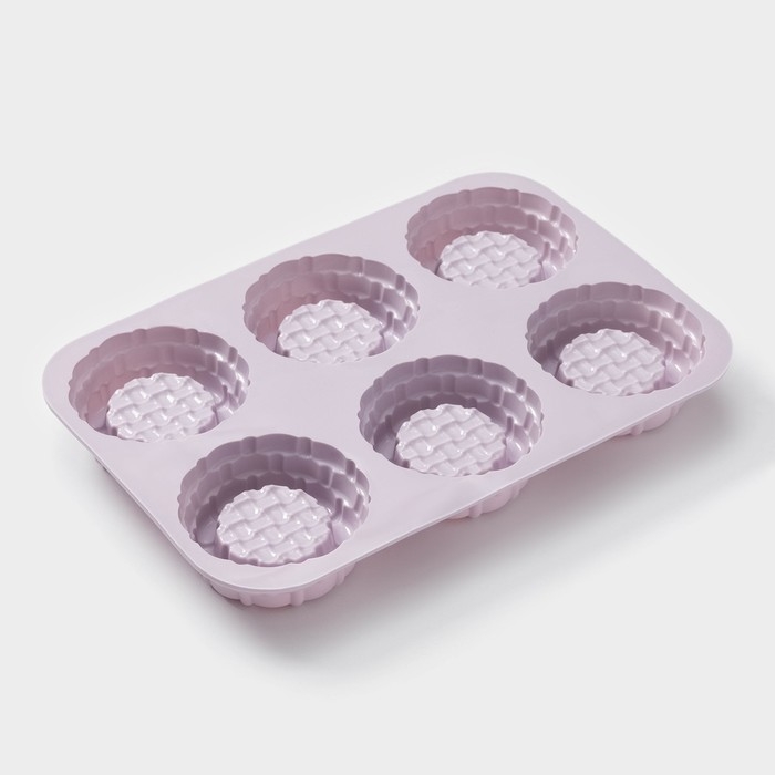 Форма для выпечки 6 ячеек "Немецкий кекс.Корзинка", 31х21х3,5 см (d-9,1см, цвет бежевый