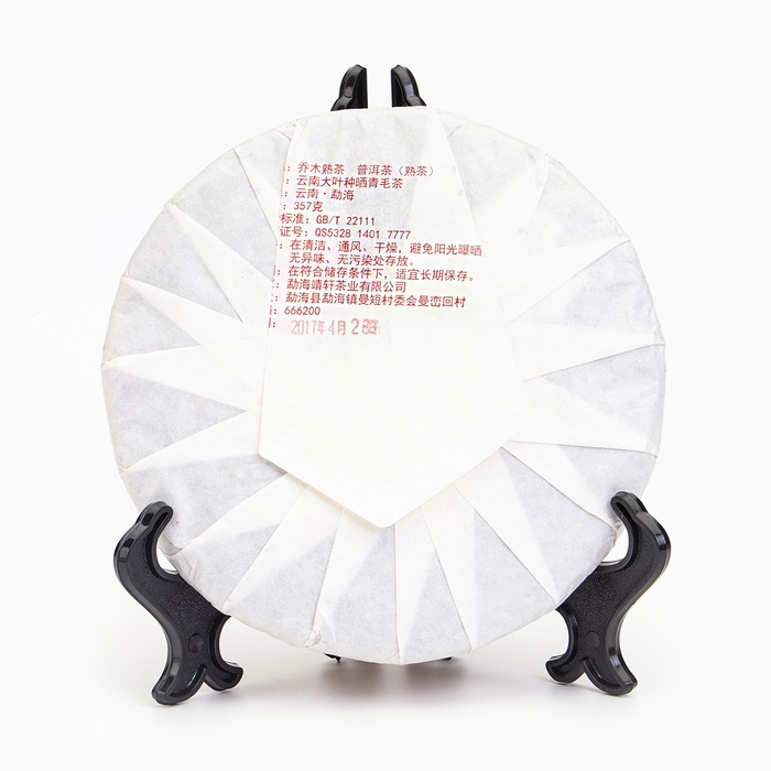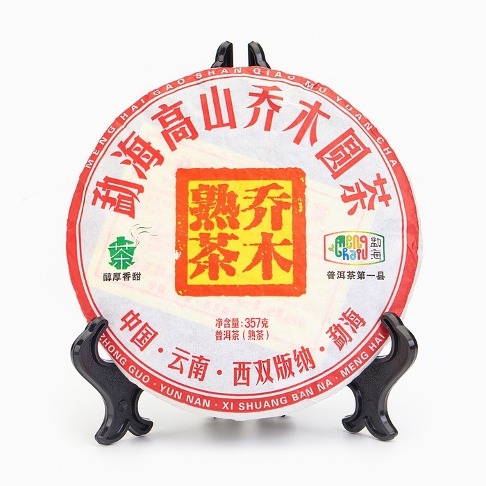 Чай китайский черный "Шу Пуэр Цяо Му. Высокогорный", уезд Мэнхай, 2017 год, блин, 357 г