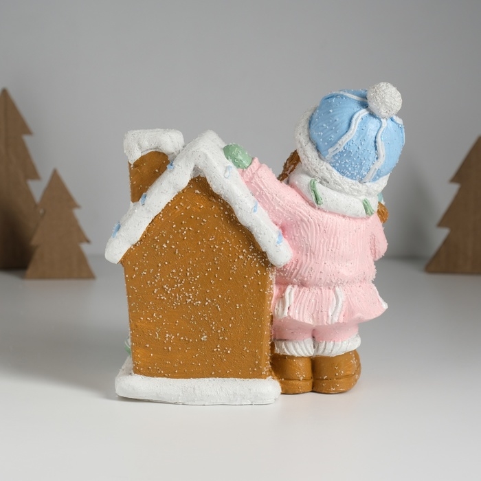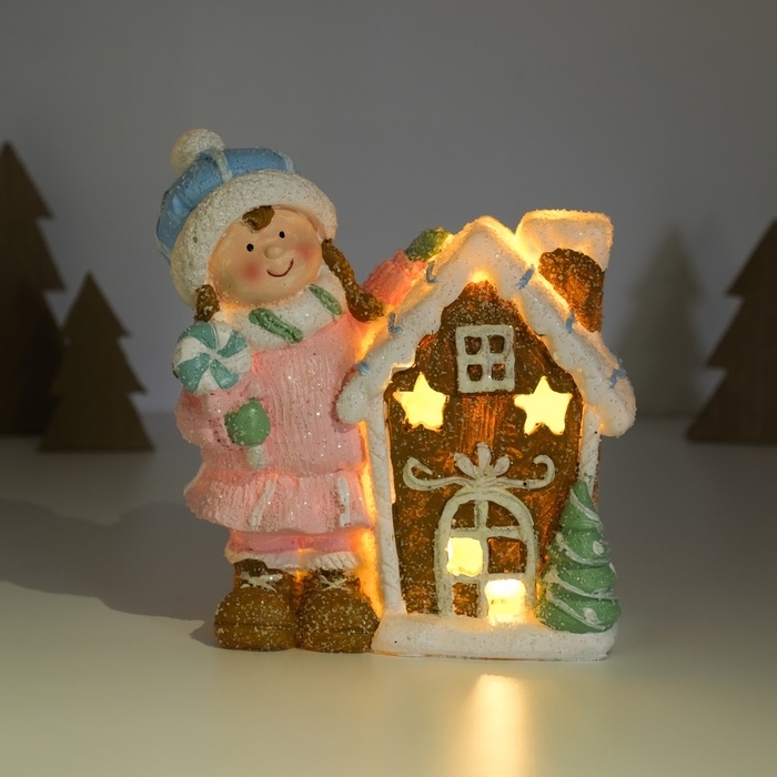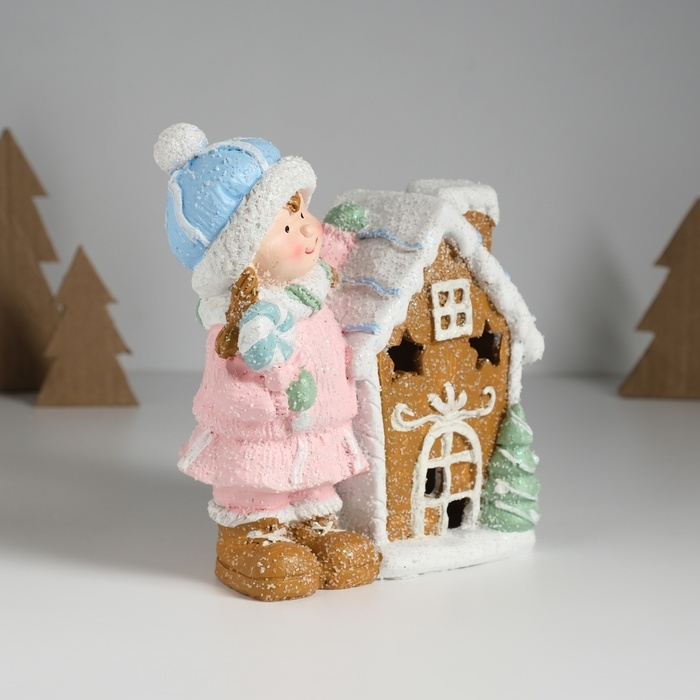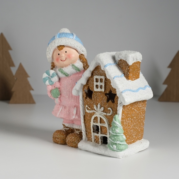 Сувенир керамика свет "Малышка в розовом наряде у пряничного домика" 15х8х16 см