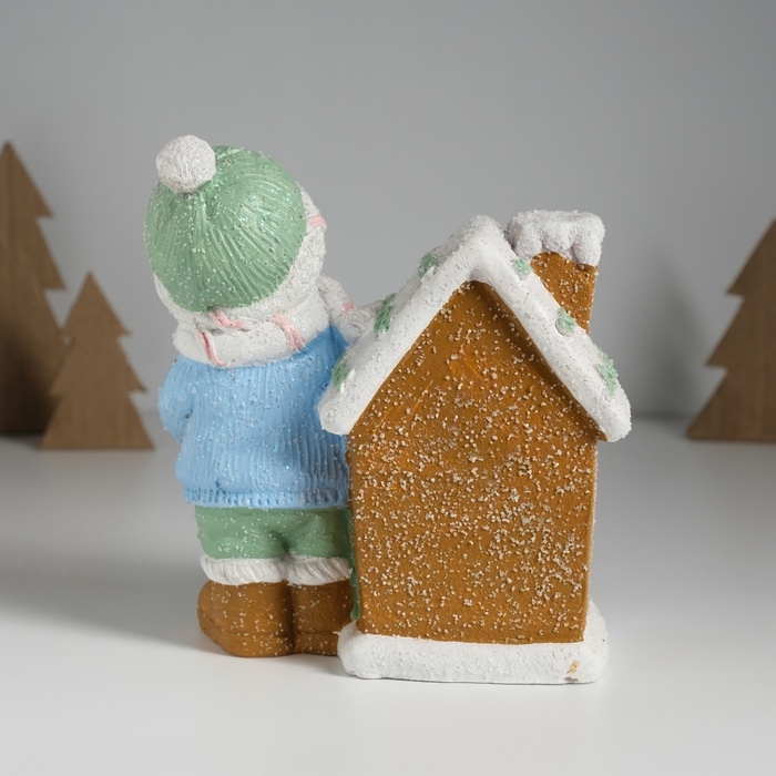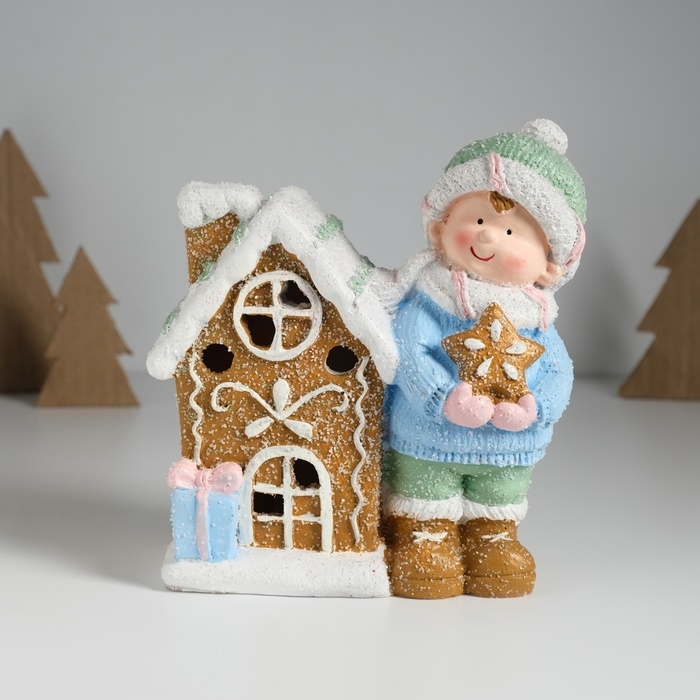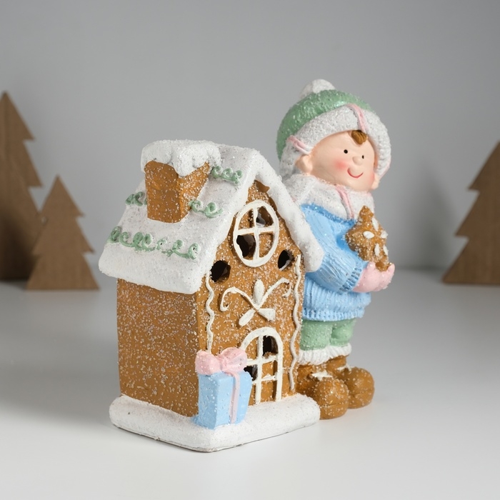 Сувенир керамика свет "Малышка в голубом свитере у пряничного домика" 15х8х16 см