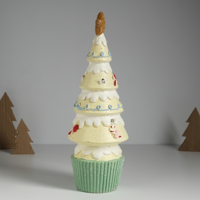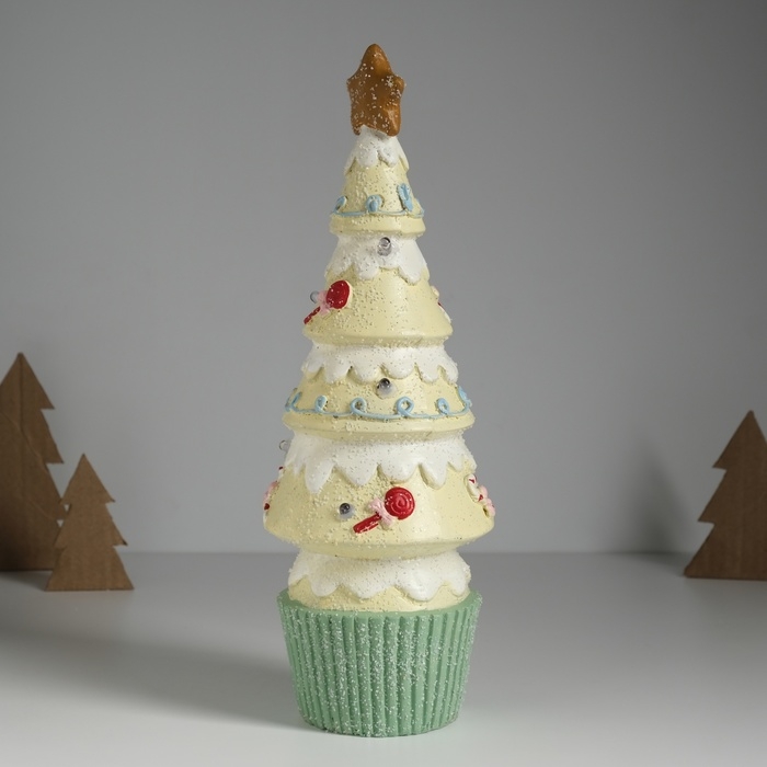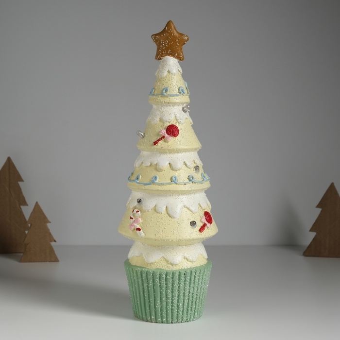 Сувенир керамика свет "Пряничная ёлочка" светло-жёлтая 10х10х31 см