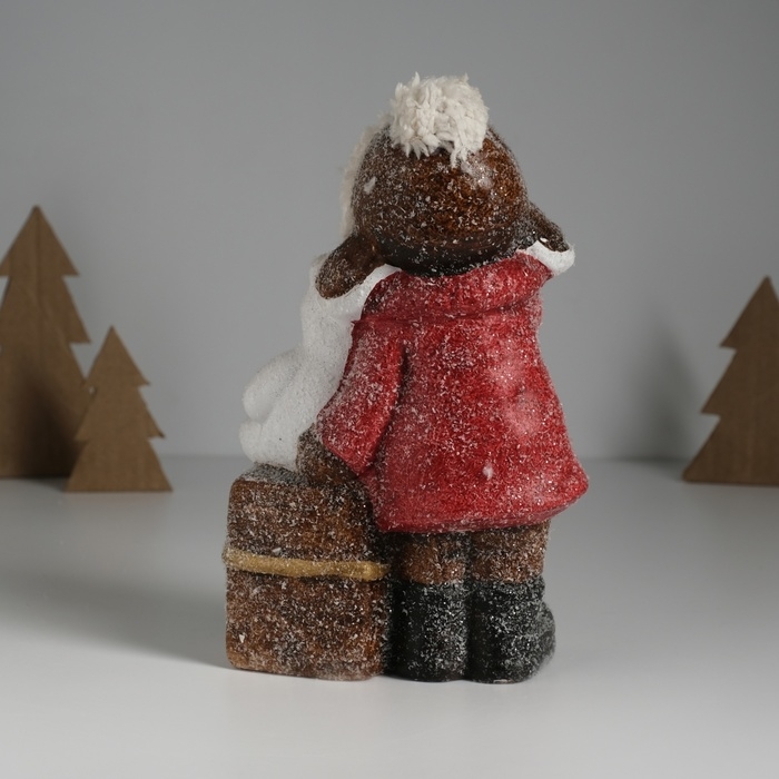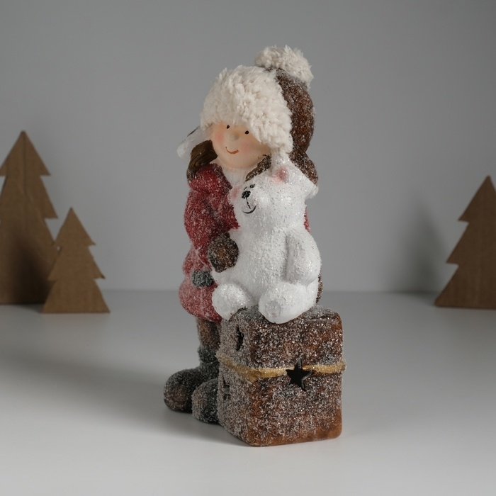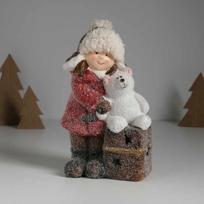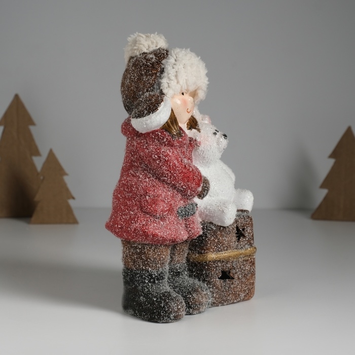 Сувенир керамика свет "Малышка в красном пальто, с мишкой на подарке" 12х6,5х20 см