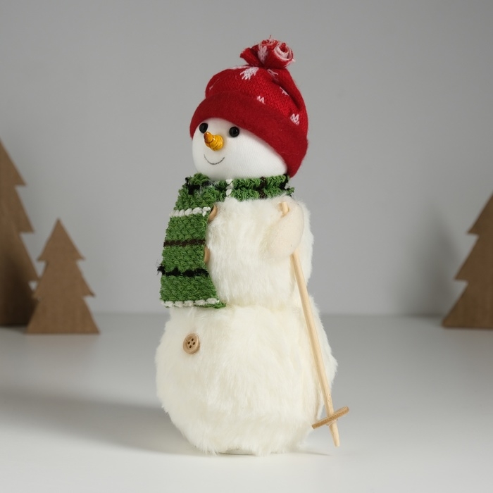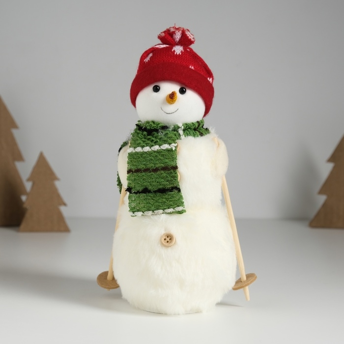 Сувенир текстиль "Снеговик в зелёном шарфике, на лыжах" 12х9х20 см