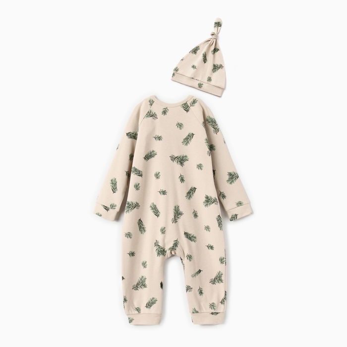 Комбинезон с шапочкой Крошка Я "Еловые веточки", рост 62-68 см, бежевый