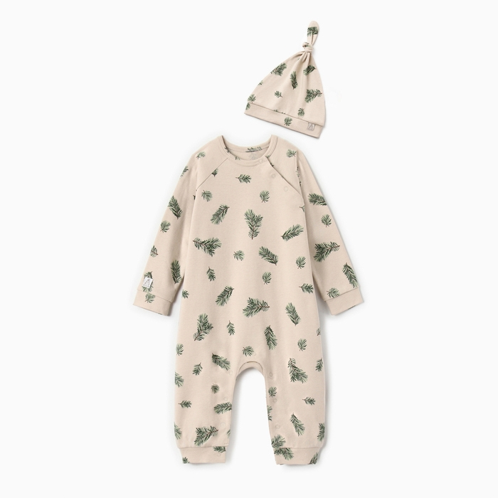 Комбинезон с шапочкой Крошка Я "Еловые веточки", рост 80-86 см, бежевый