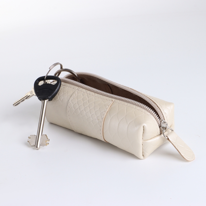 Ключница, TEXTURA, 12,5х4,5х3,5 см, на молнии, кольцо, питон молочный 130