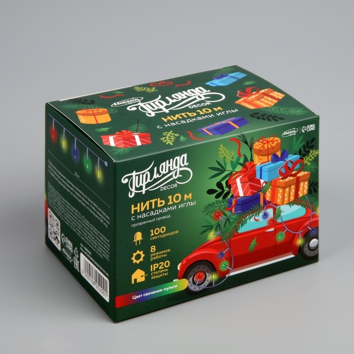 Гирлянда «Нить» 10 м с насадками «Игла», IP20, прозрачная нить, 100 LED, свечение мульти, 8 режимов, 220 В