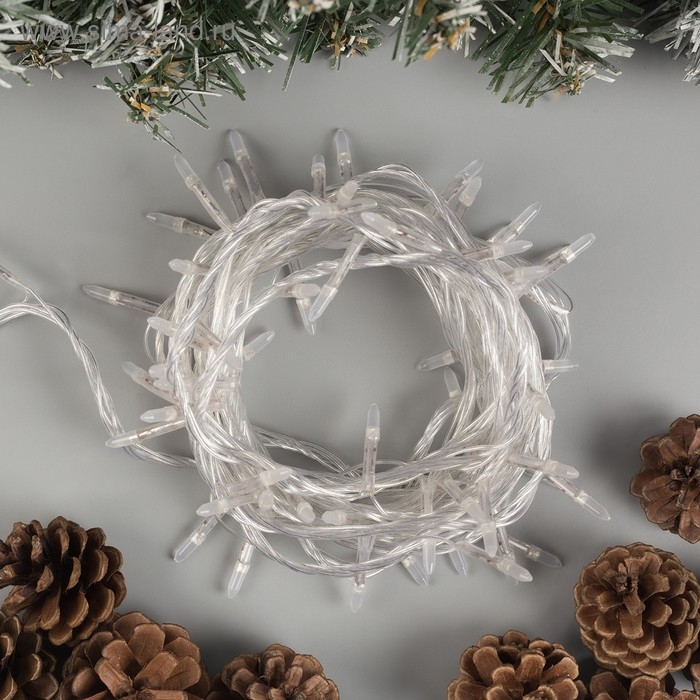 Гирлянда «Занавес» 2.5 × 0.65 м с насадками «Капли», IP20, прозрачная нить, 50 LED, свечение тёплое белое, 8 режимов, 220 В