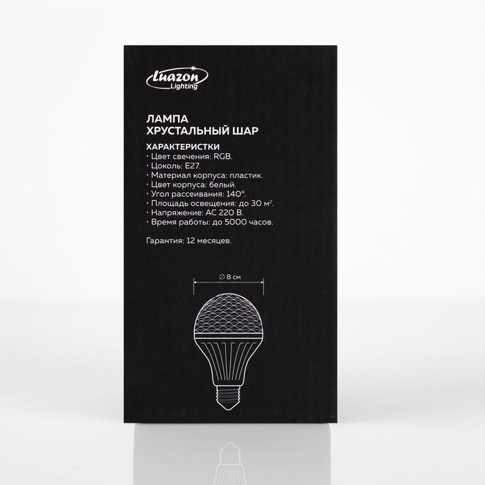 Световой прибор «Хрустальный шар» 8 см, Е27, свечение RGB