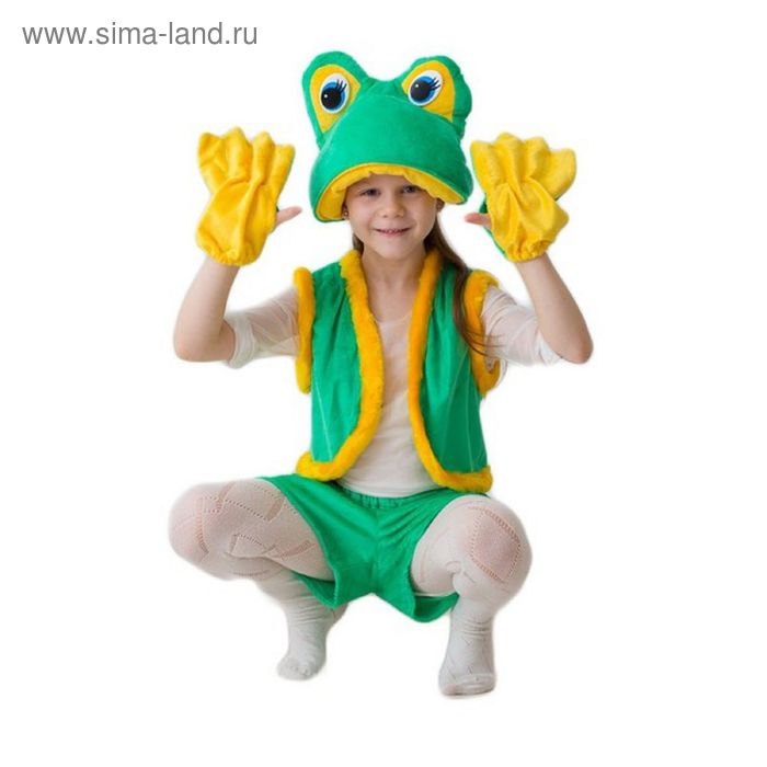 Карнавальный костюм "Лягушка-квакушка", шапка, жилет, шорты, перчатки, 5-7 лет, рост 122-134 см