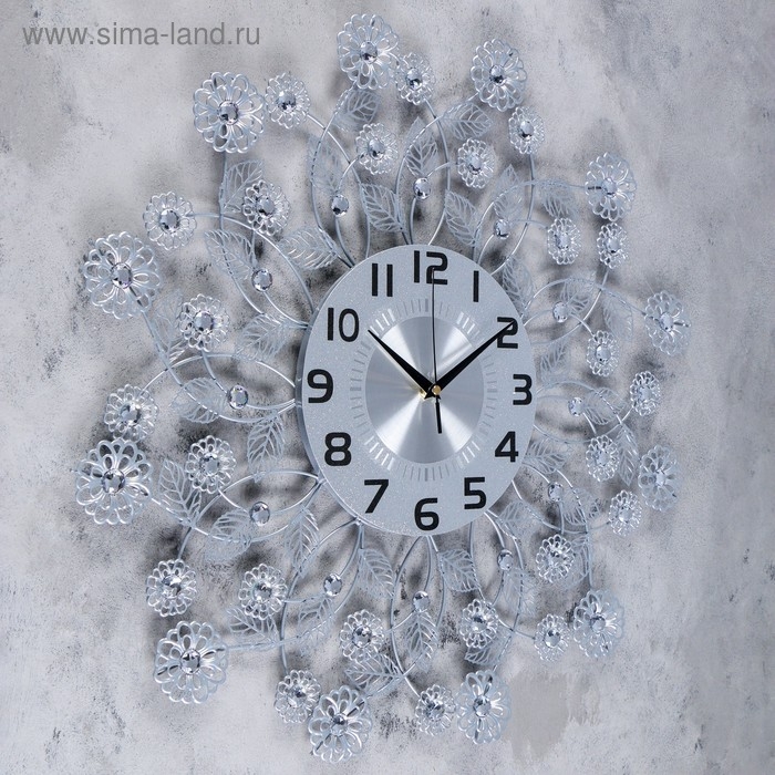 Часы настенные, серия: Ажур, "Листья и цветочки", плавный ход, d-59 см, циферблат 22 см