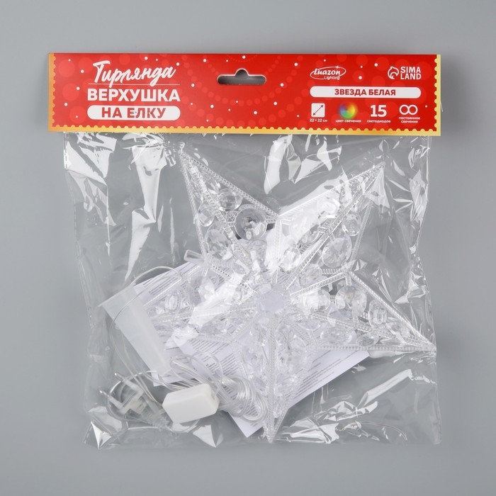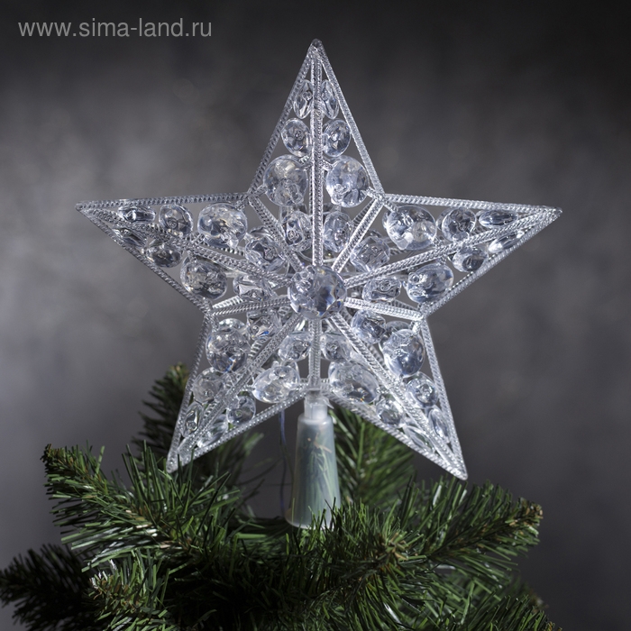 Светодиодная верхушка на ёлку «Звезда белая» 22 см, 15 LED, провод 2 метра, 220 В, свечение мульти
