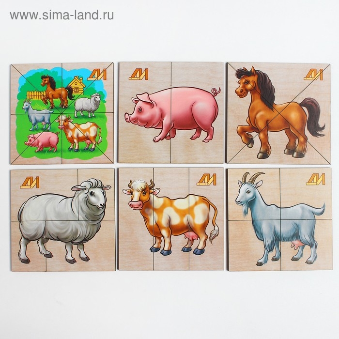 Пазлы «Сложи картинку. Домашние животные» Деревянные Игрушки