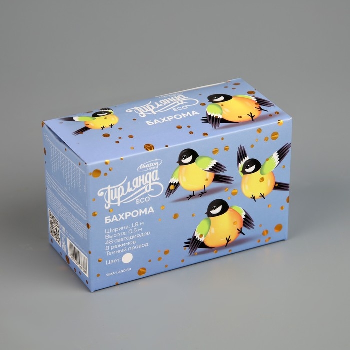 Гирлянда «Бахрома» 1.8 × 0.5 м, IP20, тёмная нить, 48 LED, свечение белое, 8 режимов, 220 В