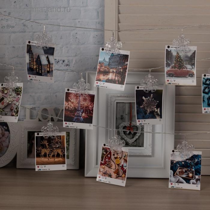 Гирлянда «Нить» 4.5 м с насадками «Прищепки-снежинки», IP20, прозрачная нить, 20 LED, свечение синее, 220 В