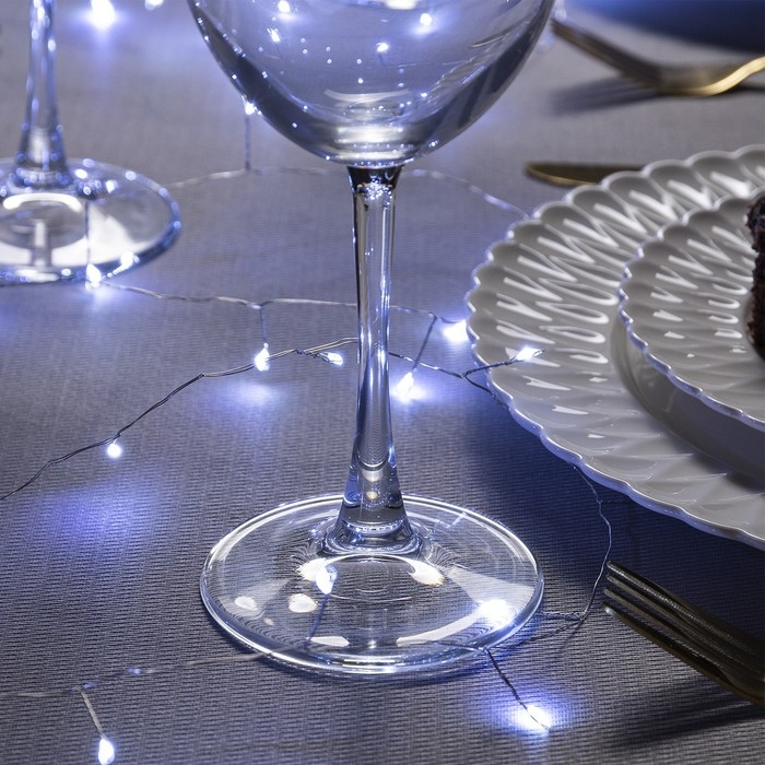 Гирлянда «Мишура» 5 м роса, IP20, серебристая нить, 100 LED, 2 режима, батарейки AAх3 (нет в комплекте), свечение белое