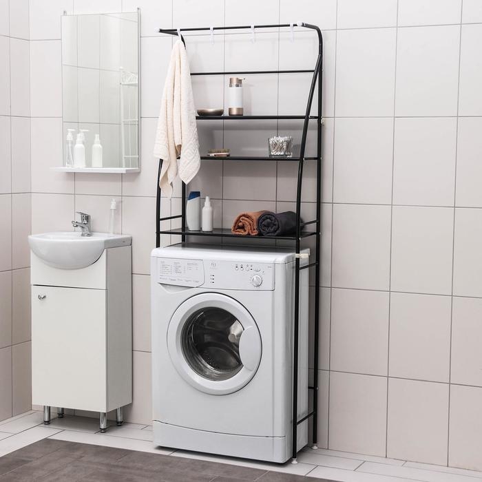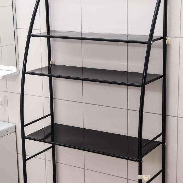 Стеллаж над стиральной машинкой со штангой для сушки, 66×25×175 см, цвет чёрный