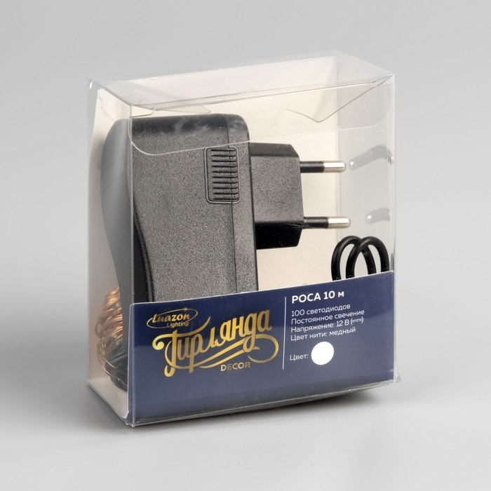 Гирлянда «Нить» 10 м роса, IP20, медная нить, 100 LED, свечение белое, 12 В