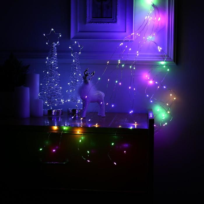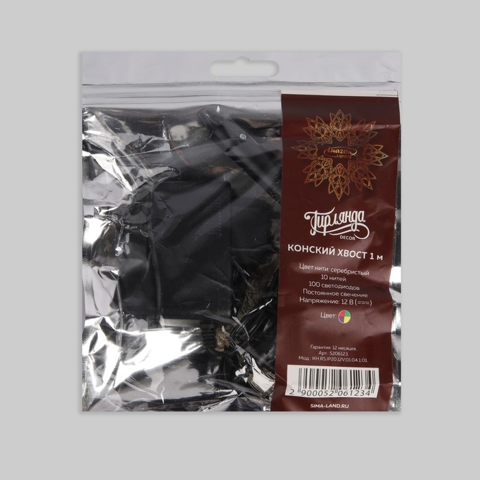 Гирлянда «Конский хвост» 10 нитей по 1 м, IP20, серебристая нить, 100 LED, свечение мульти, 12 В