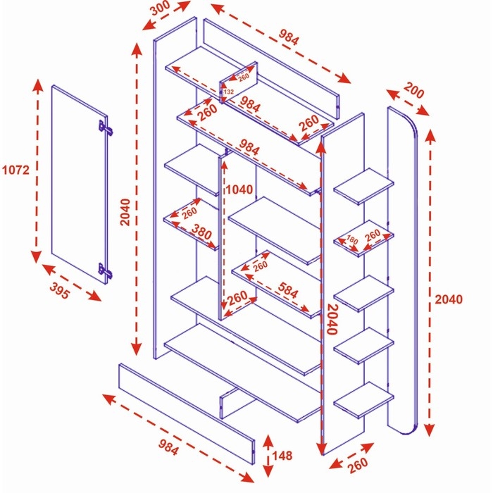Шкаф-пенал с полками Студия, 1200х300х2040, Белый