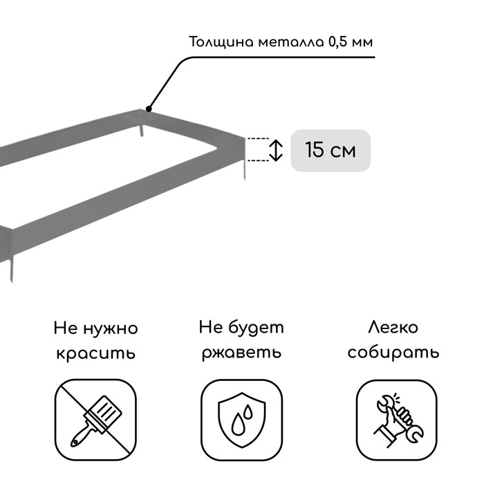 Грядка оцинкованная, 390 × 100 × 15 см, Greengo