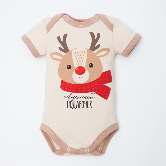 Боди детское Крошка Я «Оленёнок», рост 62-68 см, цвет бежевый