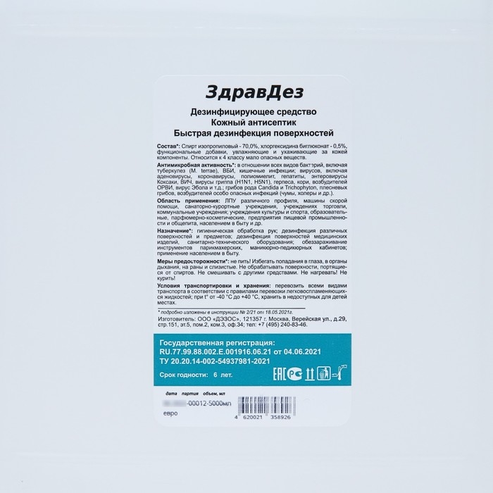 Кожный антисептик для эффективной дезинфекции кожи рук и различных поверхностей. Экономичное и безопасное дезинфицирующее средство. Быстрая дезинфекция за 20 секунд. Убивает все виды бактерий, вирусов и грибов. Защищает в течение 4 часов. Не вызывает сухости кожи и аллергии. Быстро высыхает, не оставляя липкости. Не требует смывания после обработки.