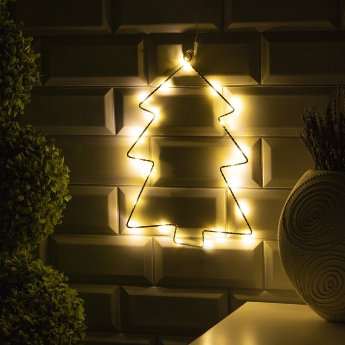 Светодиодная фигура «Ёлка» 20 × 29 см, металл, батарейки ААх2 (не в комплекте), свечение тёплое белое
