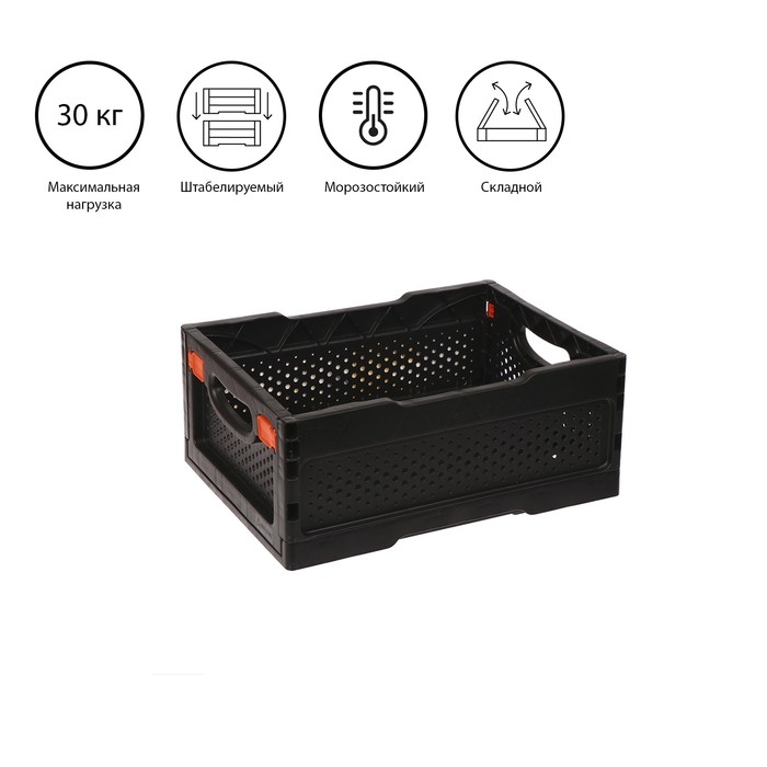 Ящик складной, пластиковый, 40 × 30 × 17 см, чёрный