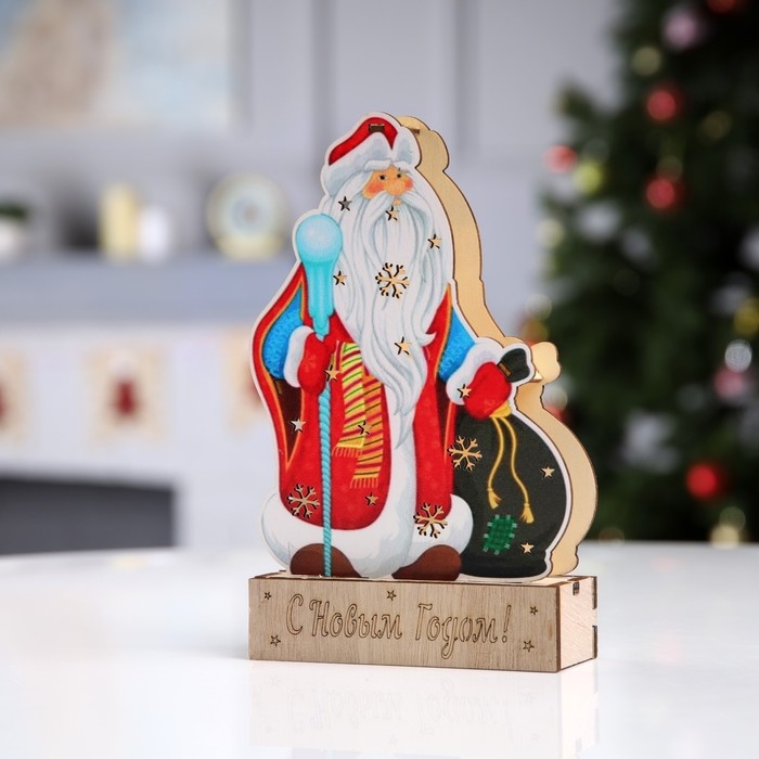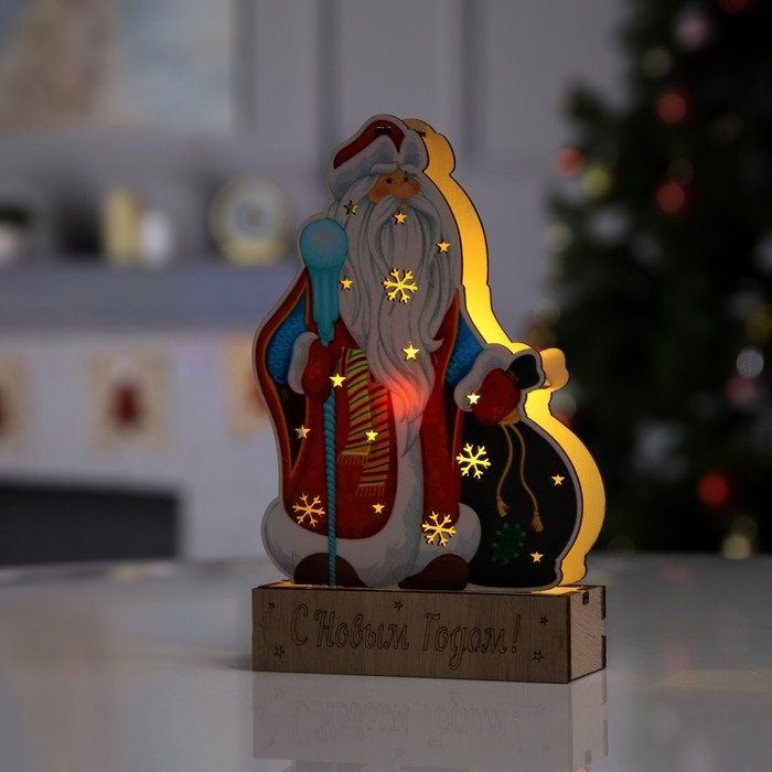 Светодиодная фигура «Дед Мороз» 14 × 20 × 2.5 см, дерево, батарейки LR1130х3 (в комплекте), свечение тёплое белое