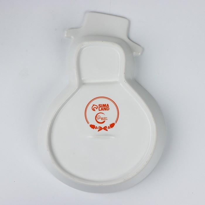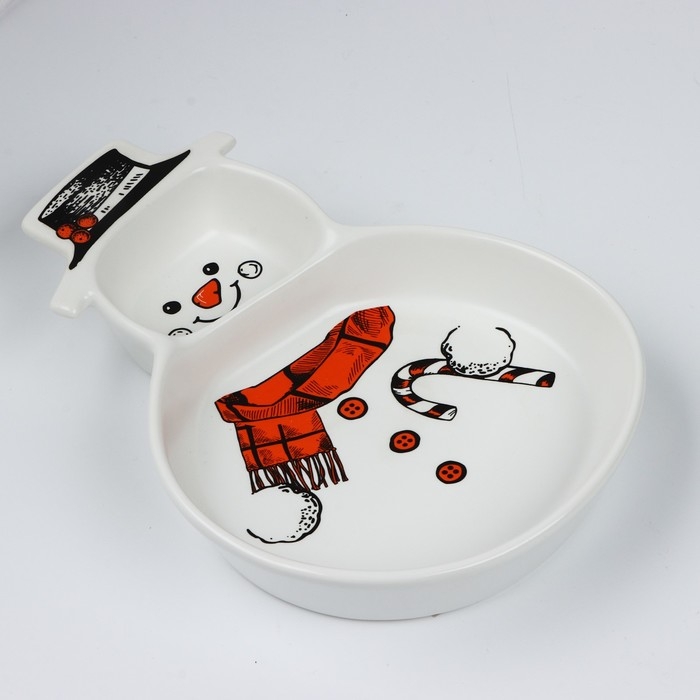 Новый год! Менажница новогодняя керамическая «Снеговик!», 14 х 20 х 3 см, цвет белый