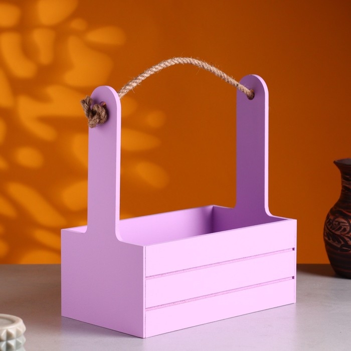 Кашпо деревянное 25.5×15×30 см "Аром", ручка канат, Сиреневый