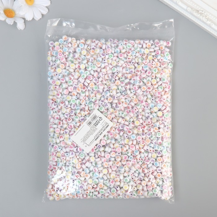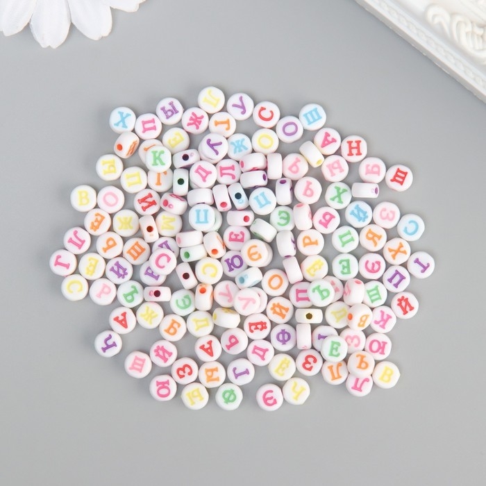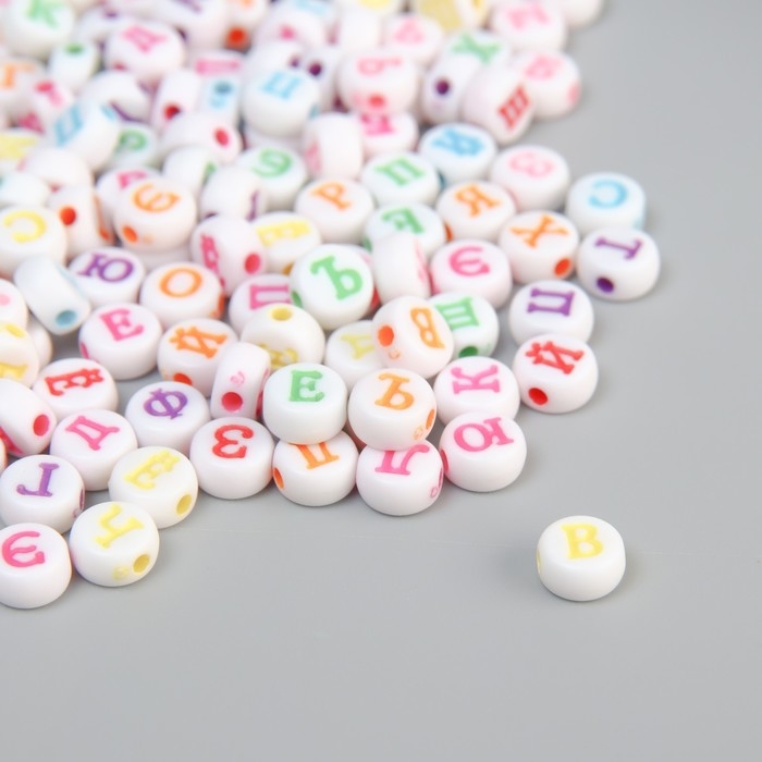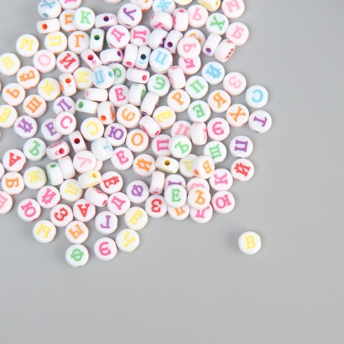 Бусины для творчества пластик "Русские цветные буквы на круге" набор 500 гр 0,7х0,7х0,4 см