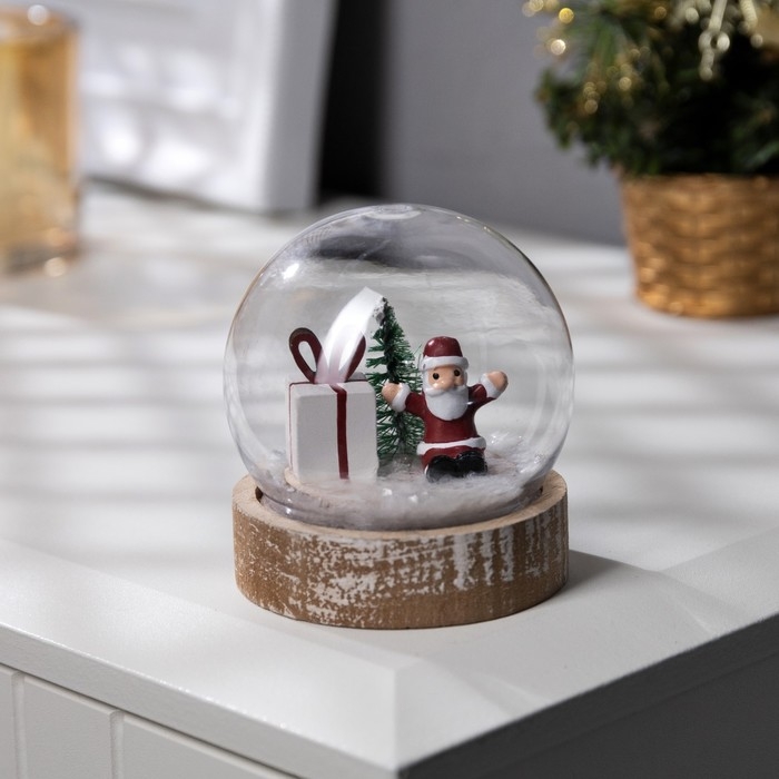 Светодиодная фигура «Шар с Дедом Морозом» 8 × 8.5 × 8 см, дерево, пластик, батарейки AG13х3 (в комплекте), свечение тёплое белое