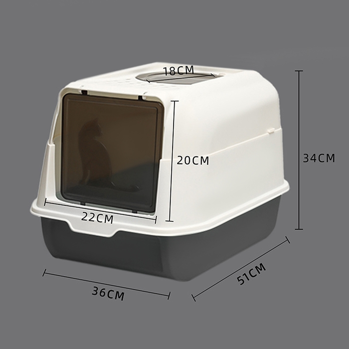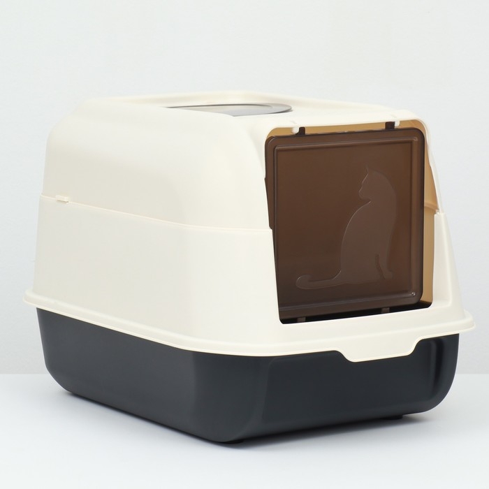 Туалет имеет пластиковый крытый корпус с высокими бортиками, чтобы предотвращает рассыпание наполнителя.