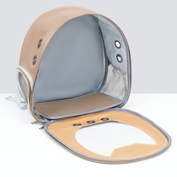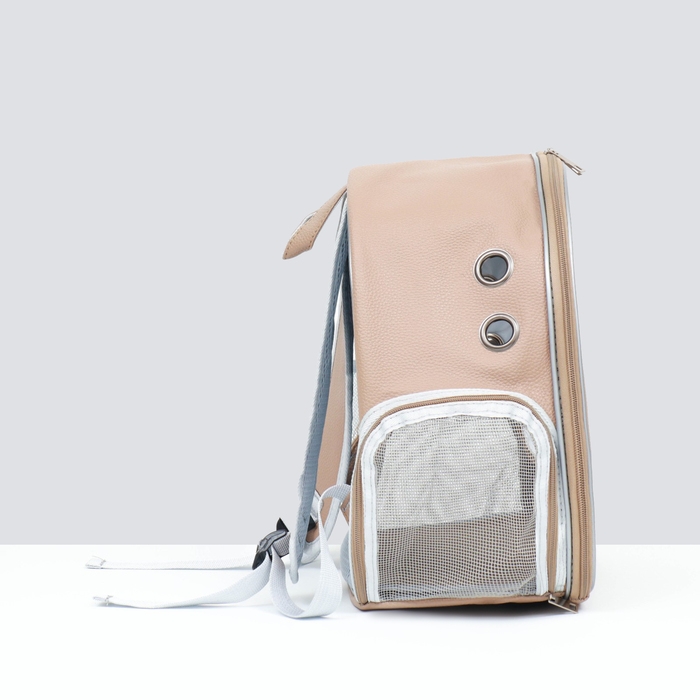 Рюкзак для переноски кошек и собак, кожзам, 32 х 21 х 35 см, бежевый