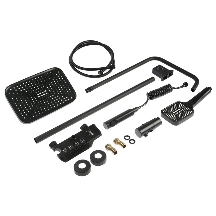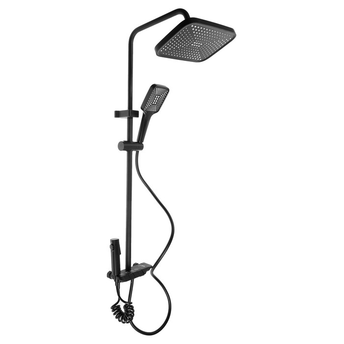 Душевая система ZEIN Z3684, верхняя и ручная лейка, ПВХ шланг, гигиенический набор, черная